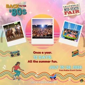 PASO ROBLES, CA, January 27, 2026 - The California Mid-State Fair is celebrating a major milestone in 2026 with the announcement of its official Fair theme: Back to the ’80s. The theme marks the Fair’s 80th anniversary, honoring eight decades of agriculture, entertainment, creativity, and community on the Central Coast.
